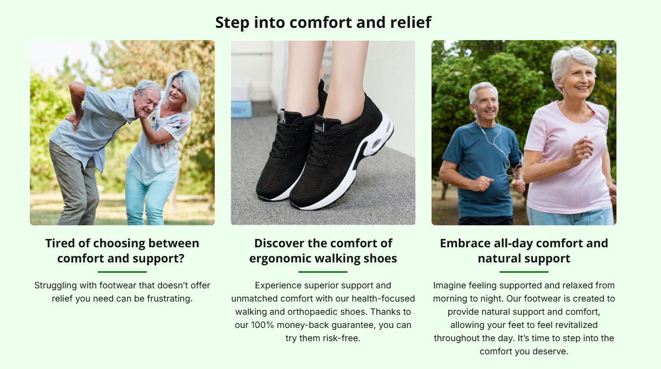 Our solution: ORTHOCARE® - orthopaedic, ergonomic and pain relief shoes that combine functionality & fashion to offer mobility, comfort and pain relief at the same time