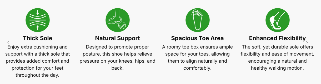 ✓ Natural walking style - Improves foot and leg strength, ideal for relieving plantar fasciitis.